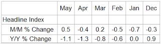 Producer prices rebounded in May, climbing 0.5 percent, seasonally adjusted, according to the U.S. Bureau of Labor Statistics, attributable to prices for final demand goods which rose 1.3 percent. This was the second monthly increase in the past six months. Producer prices fell 1.1 percent on a yearly basis.