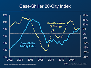 “Home prices and housing continue to show strength with home prices rising at more than double the rate of inflation,” says David M. Blitzer, Managing Director and Chairman of the Index Committee at S&P Dow Jones Indices. “The general economy appeared to slow slightly earlier in the fall, but is now showing renewed strength. With unemployment at 5 percent and hints of higher inflation in the CPI, most analysts expect the Federal Reserve to raise its Fed Funds target range to 25 to 50 basis points, the first increase since 2006. While this will make news, it is not likely to push mortgage rates far above the recent level of 4 percent on 30 year conventional loans. In the last year, mortgage rates have moved in a narrow range as home prices have risen; it will take much more from the Fed to slow home price gains.”
